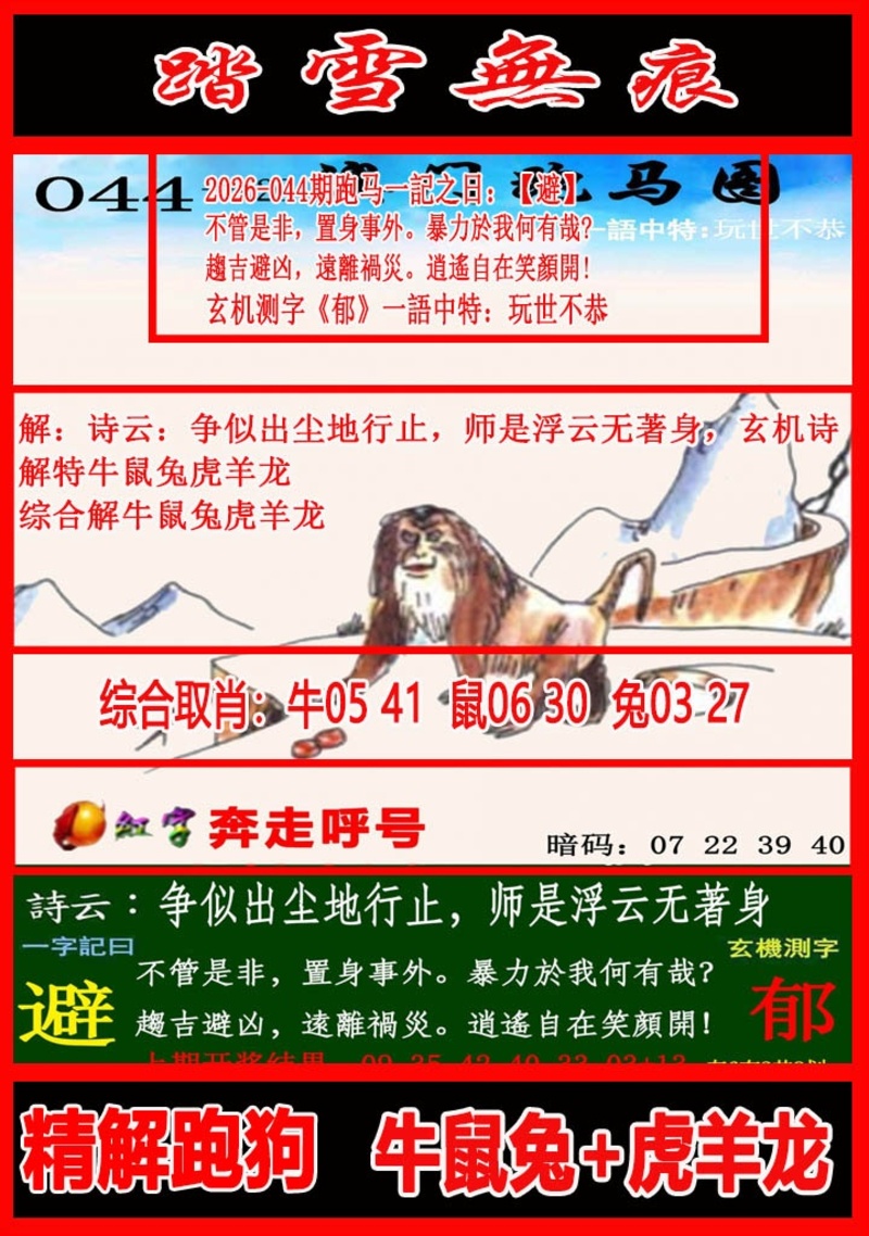 044期:【六码③中③】本站独家发表